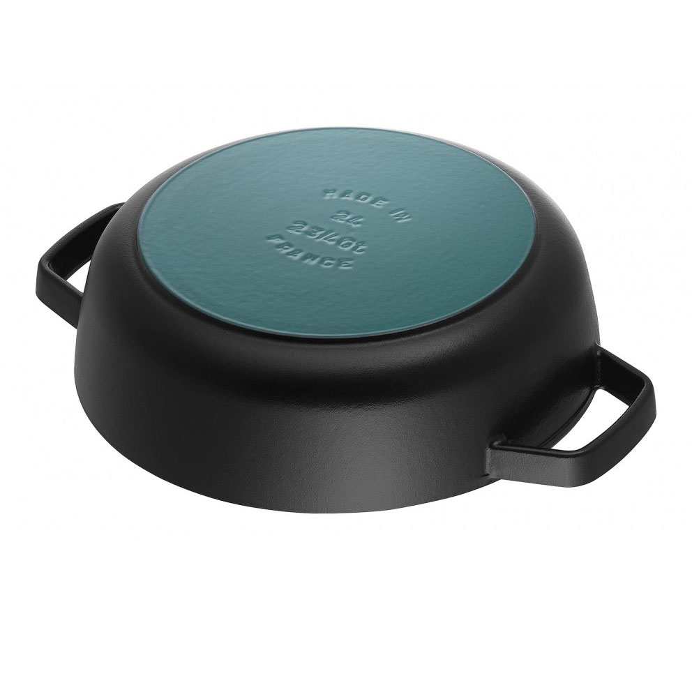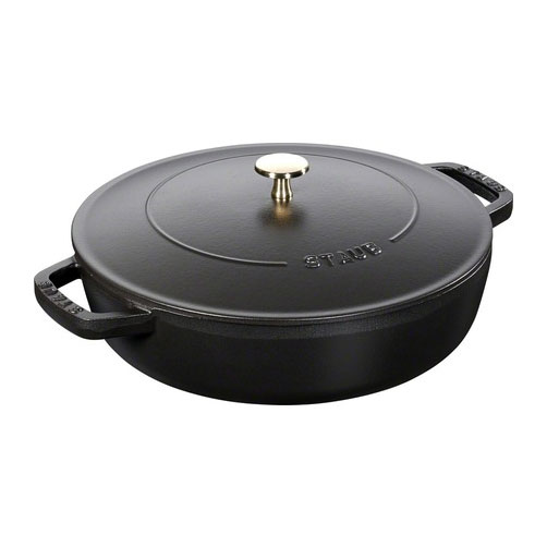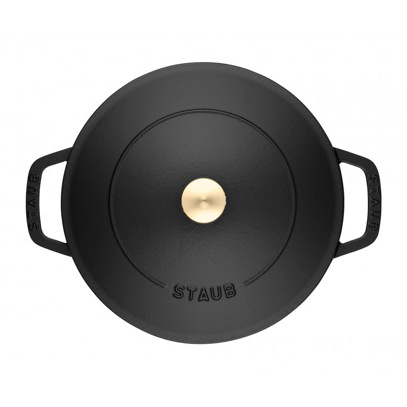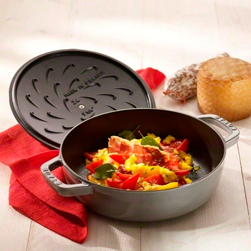 Сотейники Staub делаются из чугуна, который равномерно распределяет тепло по всей посуде, вплоть до краев. Внутри покрыты эмалью, которое имеет антипригарные свойства, не царапается и позволяет сохранить подлинный вкус продуктов. Инновационная, запатентованная технология увлажнения Chistera. Обеспечивает оптимальный и постоянный эффект увлажнения. Декоративная ручка изготовлена из латуни или никеля и выдерживает температуру до 250° C. Кроме этого, чугун уникален еще и тем, что он способен выделять в процессе готовки в небольших количествах, необходимое организму железо. Идеально подходит для жарки и тушения мяса, рыбы, овощей и других блюд, которыми Вы сможете порадовать своих гостей. Выбор профессиональных поваров и любителей.