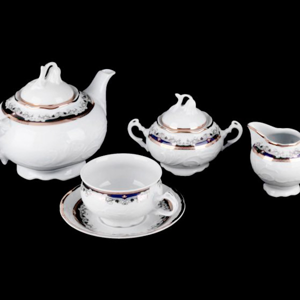 Чайный сервиз рассчитан на 6 пресон, в комплект входит самые необходимые предметы сервировки стола для чаепития. При необходимости сервиз можно докомплектовать наборами чашек на больше количество персон или дополнительными отдельными предметами для сервировки.
