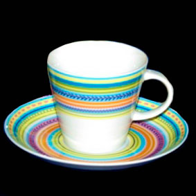 Материал: высококачественный белый фарфор с красочным рисунком. Набор состоит из 17 предметов и рассчитан на 6 персон.