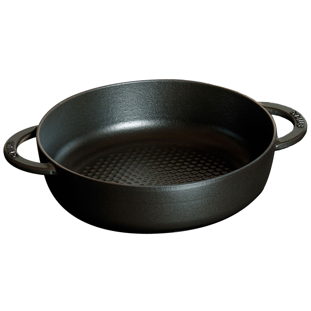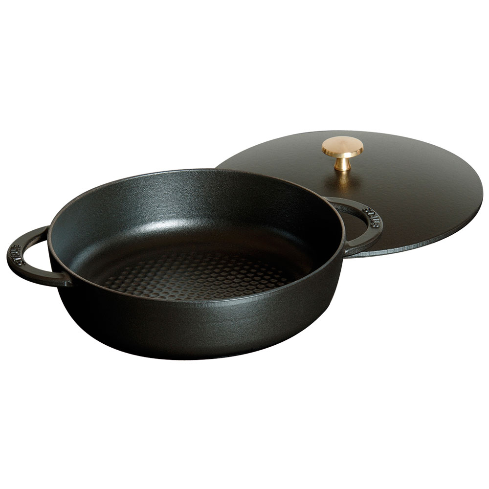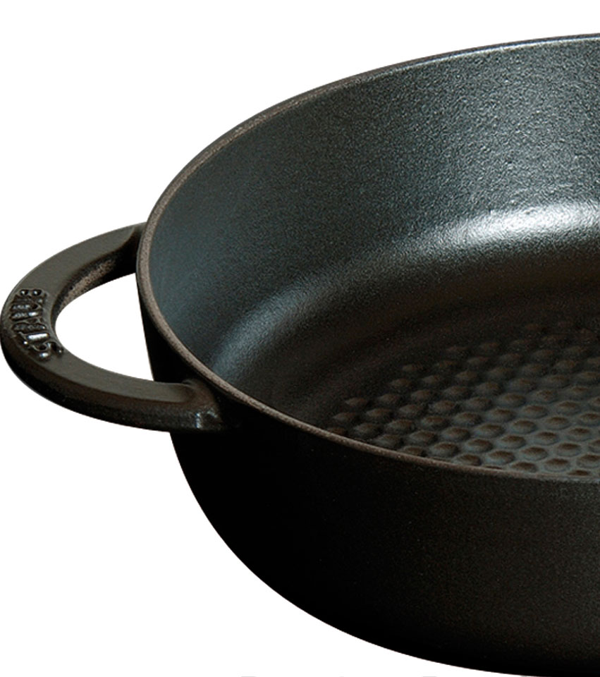 Сотейники Staub делаются из чугуна, который равномерно распределяет тепло по всей посуде, вплоть до краев. Внутри покрыты эмалью, которое имеет антипригарные свойства, не царапается и позволяет сохранить подлинный вкус продуктов. Инновационная, запатентованная технология увлажнения Chistera. Обеспечивает оптимальный и постоянный эффект увлажнения. Декоративная ручка изготовлена из латуни или никеля и выдерживает температуру до 250° C. Кроме этого, чугун уникален еще и тем, что он способен выделять в процессе готовки в небольших количествах, необходимое организму железо. Идеально подходит для жарки и тушения мяса, рыбы, овощей и других блюд, которыми Вы сможете порадовать своих гостей. Выбор профессиональных поваров и любителей.