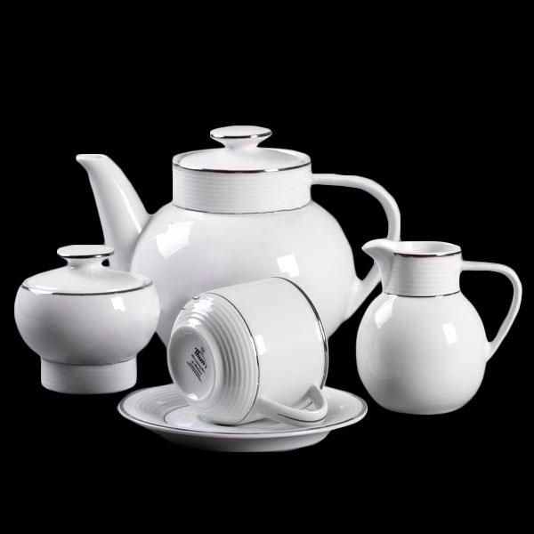 Материал: высококачественный фарфор белого цвета с изысканным платиновым ободком. Чайный сервиз рассчитан на 6 пресон, в комплекте есть самые необходимые предметы сервировки стола для чаепития. При необходимости сервиз можно доукомплектовать наборами чашок на большое количество персон или дополнительными отдельными предметами для сервировки. Посуд данного декора рекомендуется мыть вручную. Не использовать в микроволновке.