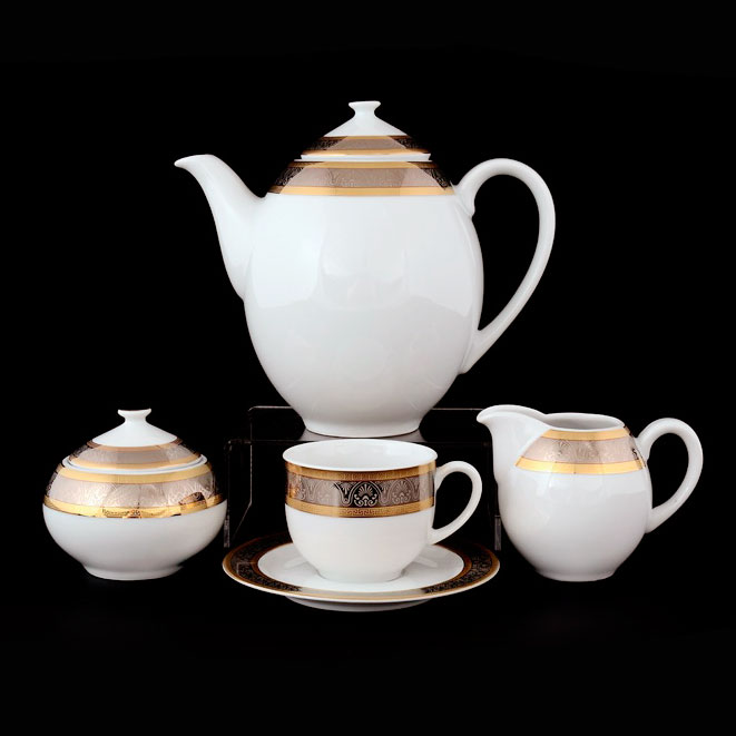 Кофейный сервиз Мокка Opal, 17 предметов /декор "Широкий кант платина, золото"/