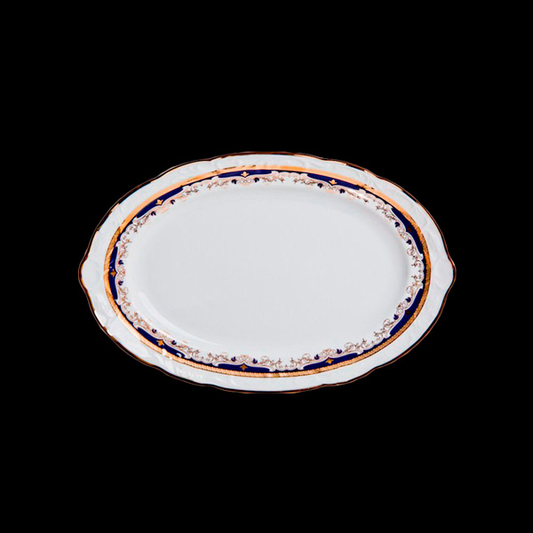 Круглое мелкое блюдо предназначено для подачи на стол мясной, овощной или рыбной нарезки.