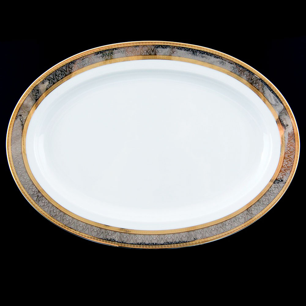Блюдо овальное Opal /декор "Широкий кант платина, золото"/Размер: 32 смМатериал: высококачественный фарфор.