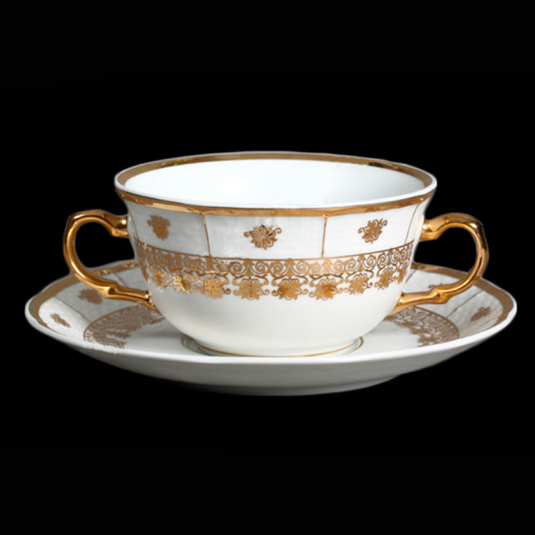 Материал: высококачественный фарфор. Золотистая отводка, ручки и держатели.