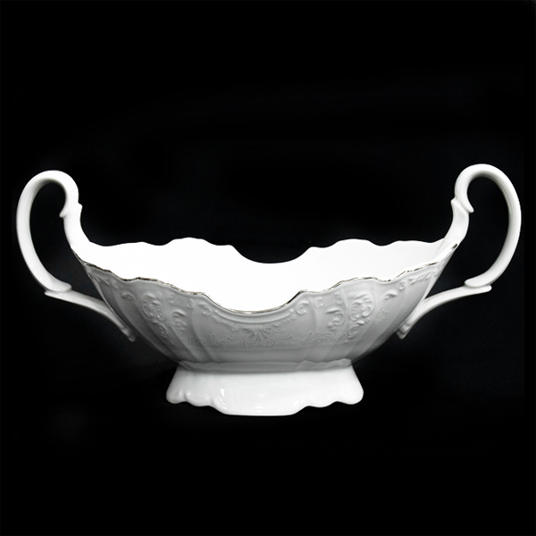 Матеріал: високоякісний фарфор. Фарфор білого кольору з елегантним рельєфним малюнком і сріблистим ободком. Його прочна структура і стійкість до сколів дозволяє використовувати цей посуд кожен день. Фарфор чешского виробника Thun завжди буде виглядати на Вашому столі елегантно і в цей час нарядно і торжественно. Висока якість продукції «Thun» досягає багатовікового досвіду у виробництві фарфору. Використання самих сучасних технологій дозволяє виробляти вироби різних розмірів і форм.