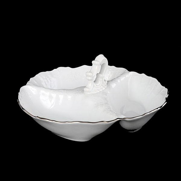 Матеріал: високоякісний фарфор. Фарфор білого кольору з елегантним рельєфним малюнком і сріблистим ободком. Його прочна структура і стійкість до сколам дозволяє використовувати цей посуд кожен день. Фарфор чешского виробника Thun завжди буде виглядати на Вашому столі елегантно і в теж час нарядно і торжественно. Висока якість продукції «Thun» досягається багатовіковим досвідом у виробництві фарфору. Використання самих сучасних технологій дозволяє виробляти вироби різних розмірів і форм.