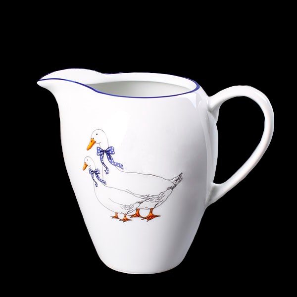 Материал: высококачественный фарфор. Фарфор белого цвета с округлыми стройными формами, синим ободком и рисунком с гусями. Объем 180 мл. Молочник предназначен для подачи сливок, молока во время чаепития или к другим гарячим напиткам. Фарфор чешского производителя Thun всегда будет выглядеть на Вашем столе элегантно и в тоже время нарядно и торжественно.