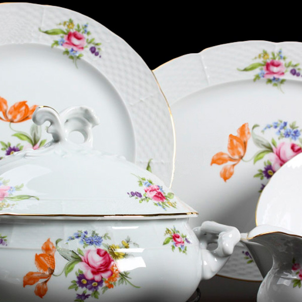 Материал: высококачественный фарфор. Фарфор белого цвета с красочным рисунком и золотистым ободком создаст атмосферу праздника. Его прочная структура и устойчивость к сколам позволяет пользоваться данной посудой каждый день. Фарфор чешского производителя Thun всегда будет выглядеть на Вашем столе элегантно и в тоже время нарядно и торжественно. Высокое качество продукции «Thun» достигается многовековым опытом в производстве фарфора. Использование самых современных технологий позволяет производить изделия различных размеров и форм.