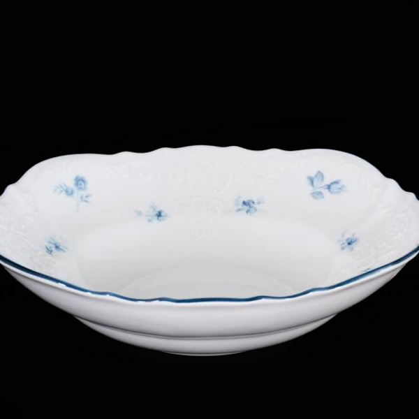 Матеріал: високоякісний фарфор. Фарфор білого кольору з красивим рельєфним малюнком і синіми квіточками створює атмосферу свята. Його прочна структура і стійкість до сколам дозволяє використовувати цей посуд кожен день. Фарфор чешского виробника Thun завжди буде виглядати на Вашому столі елегантно і в теж час нарядно і торжественно. Висока якість продукції «Thun» досягається багатовіковим досвідом у виробництві фарфору. Використання самих сучасних технологій дозволяє виробляти вироби різних розмірів і форм.