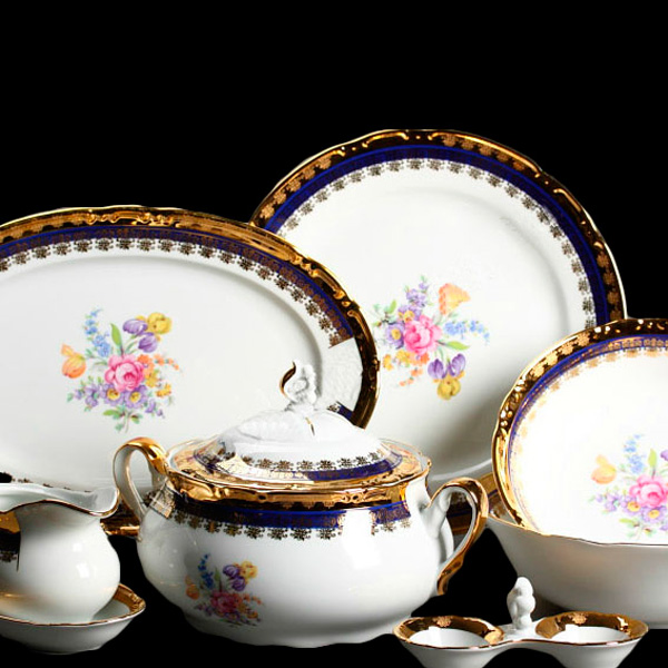 Столовый сервиз рассчитан на 6 пресон, в комплект входит самые необходимые предметы для сервировки стола. При необходимости столовый сервиз можно докомплектовать наборами тарелок на большое количество персон или дополнительными отдельными предметами для сервировки. Сервиз этого декора идеально сочетаются с другими элементами сервировки торжественного стола.