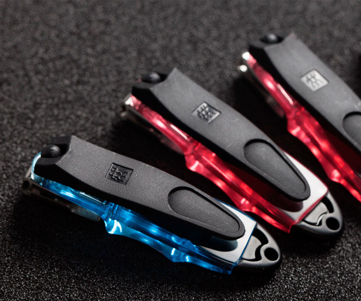 Щипцы изготовлены из стали и прочного пластика прозрачно-синего и чёрного цвета. Предназначены для обрезания ногтей на руках и ногах. В комплект также входит маленькая пилочка для ногтей, которая прячется в ручку щипцов. Акционный товар, продается без упаковки.