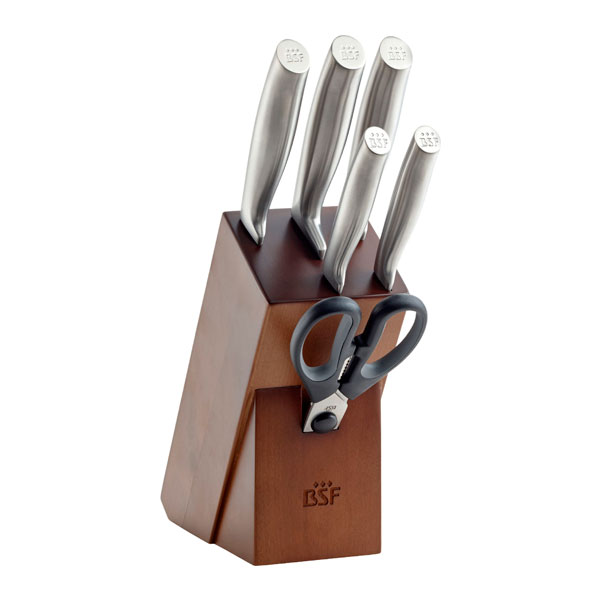 Набор ножей из семи предметов BSF Chicago сочетает в себе простой дизайн с практическим использованием. Например, рукоятки острых ножей не скользят и хорошо лежат в руке. Благородное сочетание темного березового дерева и нержавеющей стали вдохновит вас на приготовления самых вкусных блюд.