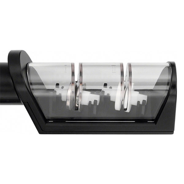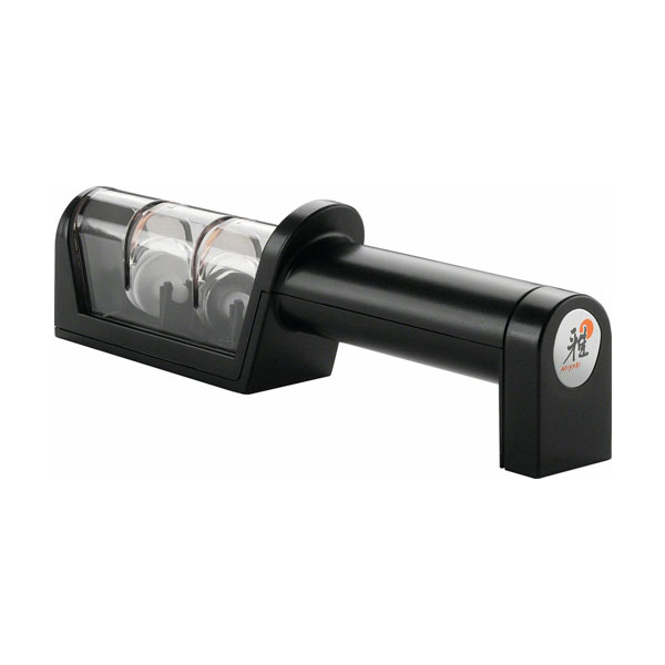 С помощью точилки для ножей Miyabi Ваши ножи можно заточить более плавно и с большим комфортом. Точилка с керамическими роликами имеет уже предустановленный угол заточки так, что Ваш нож всегда будет находиться в правильном положении. Лезвие сначала вытягивается через ролик с алмазным покрытием несколько раз, чтобы добиться красивой режущей кромки. Затем нож вытягивается через керамические ролики, что делает его чрезвычайно острым.