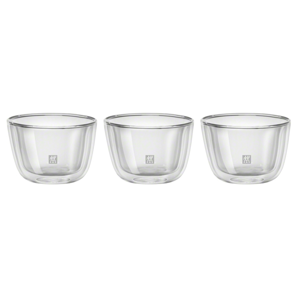 Набір з трьох емкостей для закусок із серії Sorrento зроблений з боросилікатного стекла - високоякісного матеріалу. Ці ємності дуже легко тримати в руці, вони прочні і довговічні. Завдяки двойним стенкам, ваша гаряча або холодна закуска залишиться гарячою або холодною довго. Видуваются ці ємності тільки вручну. Іх легко можна мити в посудомоечной машині. Завдяки співпраці Zwilling з дизайнерами Matteo Thun & Antonio Rodriguez ємності для закусок мають дуже привабливий зовнішній вигляд і є прикрасою столу. Вони підходять не тільки для закусок, але і для подачі різних соусів, десертів.