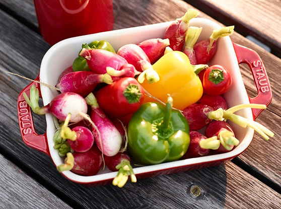 Фирма Staub производит свою продукцию из материалов самого высокого качества. Гармоническое сочетания совершенства и элегантности делает их на голову выше остальных фирм. Все изделия тщательно проверяются на соответствие всем современным требованиям к керамической посуде и имеют множество разнообразных форм и размеров, чтобы удовлетворить все потребности клиента. Универсальное красивое блюдо для запекания. Идеально подходит для запеканок, лазаньи и других ваших любимых блюд.