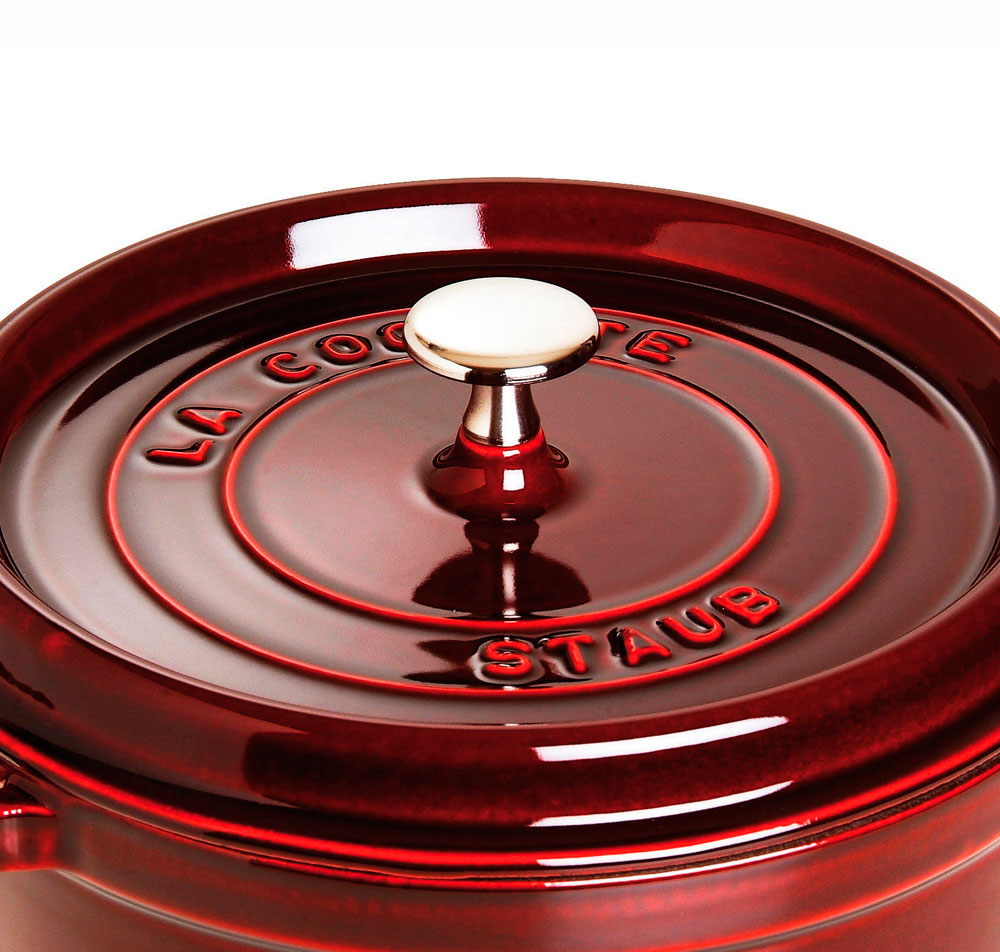 Кокотница изготовлена из литого чугуна, с внешней и внутренней стороны покрыта двойным слоем эмали, что позволяет готовить продукты очень нежно. Благодаря чугуну еда долгое время остается теплой. Кроме этого, он уникален еще и тем, что способен выделять в процессе готовки в небольших количествах, необходимое организму железо. Крышка кокотницы имеет шипы, которые создают "эффект дождя", постоянно циркулируя влагу внутри кастрюли. Благодаря латунной ручке на крышке, кокотницу можно использовать в духовом шкафу. Идеальное дополнение к сервировке стола для романтического ужина.