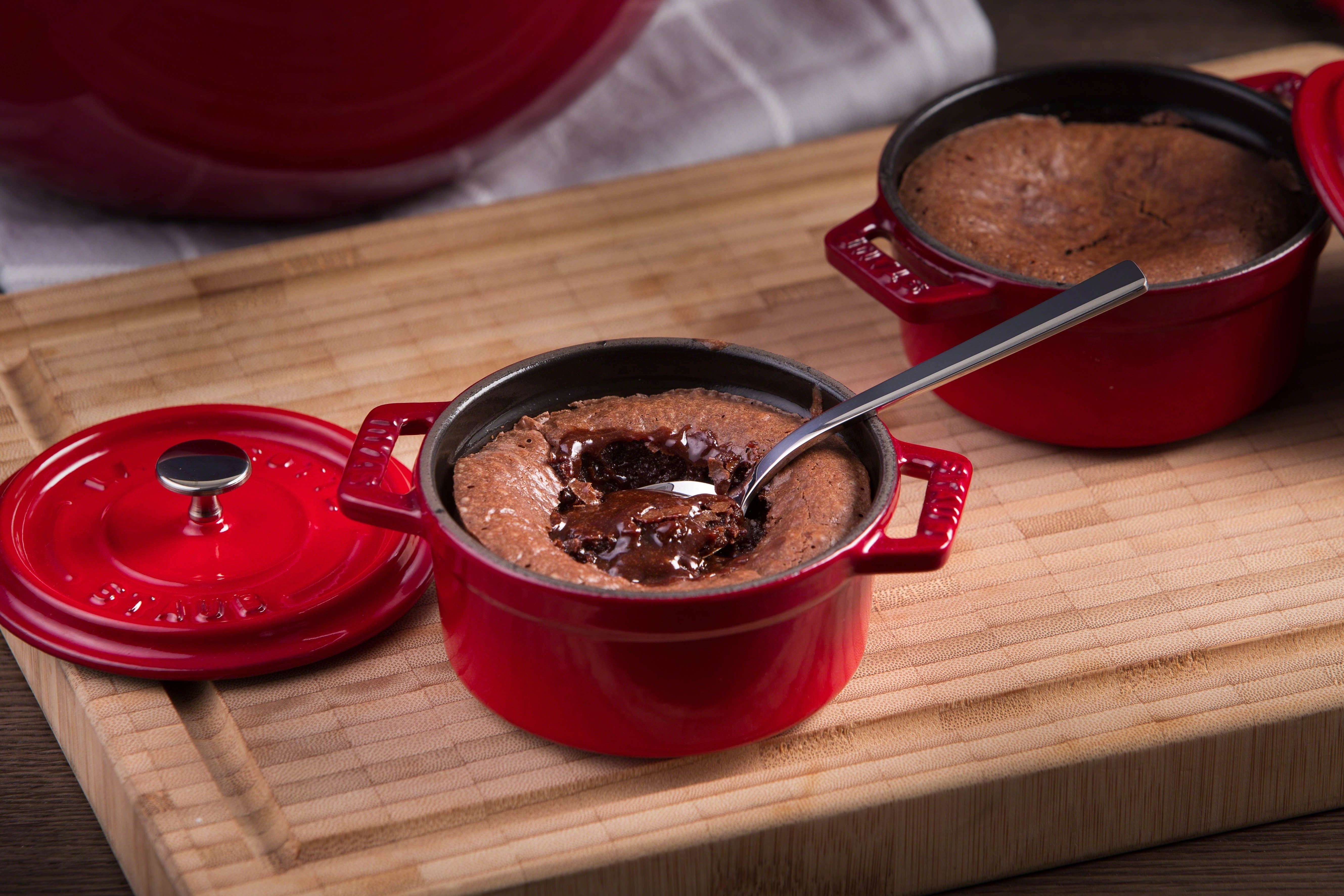 Кокотница изготовлена из литого чугуна, с внешней и внутренней стороны покрыта двойным слоем эмали, что позволяет готовить продукты очень нежно. Благодаря чугуну еда долгое время остается теплой. Кроме этого, он уникален еще и тем, что способен выделять в процессе готовки в небольших количествах, необходимое организму железо. Крышка кокотницы имеет шипы, которые создают "эффект дождя", постоянно циркулируя влагу внутри кастрюли. Благодаря латунной ручке на крышке, кокотницу можно использовать в духовом шкафу. Идеальное дополнение к сервировке стола для романтического ужина.