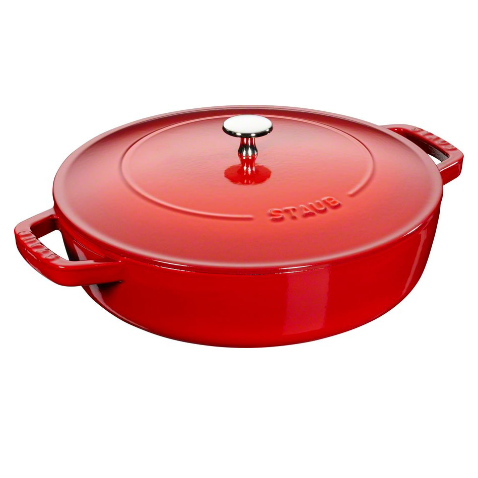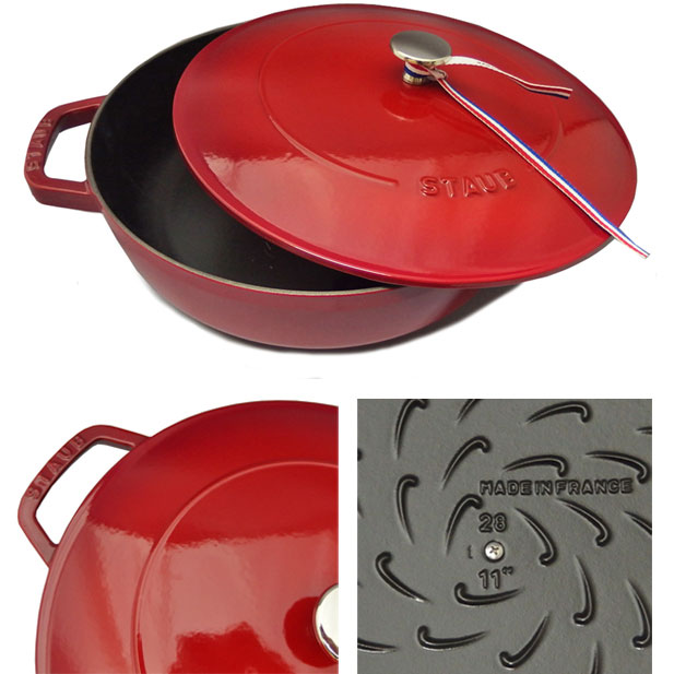 Сотейники Staub делаются из чугуна, который равномерно распределяет тепло по всей посуде, вплоть до краев. Внутри покрыты эмалью, которое имеет антипригарные свойства, не царапается и позволяет сохранить подлинный вкус продуктов. Инновационная, запатентованная технология увлажнения Chistera. Обеспечивает оптимальный и постоянный эффект увлажнения. Декоративная ручка изготовлена из латуни или никеля и выдерживает температуру до 250° C. Кроме этого, чугун уникален еще и тем, что он способен выделять в процессе готовки в небольших количествах, необходимое организму железо. Идеально подходит для жарки и тушения мяса, рыбы, овощей и других блюд, которыми Вы сможете порадовать своих гостей. Выбор профессиональных поваров и любителей.