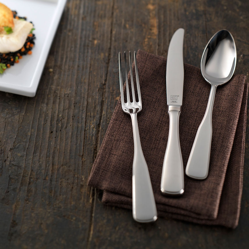 Столовые приборы Mayfield от Zwilling J.A. Henckels изготовлены из нержавеющей стали 18/10 (хром/никель), что делает их более стойкими царапинам, более блестящими и стойкими к коррозии. Все поверхности и кромки идеально отполированы. Каждый предмет из набора идеально сбалансирован, эргономичен, что приносит удовольствие от пользования этими столовыми приборами. Высочайшее качество, комфорт и максимальная функциональность – вот стандарты, которыми руководствуются дизайнеры, создавая продукцию Zwilling J.A. Henckels. Классический дизайн в современной интерпретации. Расширенная форма ручки прекрасно сочетается с изящными элементами. Новый, неповторимый дизайн, который стал классикой, разработанный всемирно известным дизайнером и архитектором мирового уровня Matteo Thun. Подходит для мытья в посудомоечной машине. Упаковано в фирменную картонную коробку.