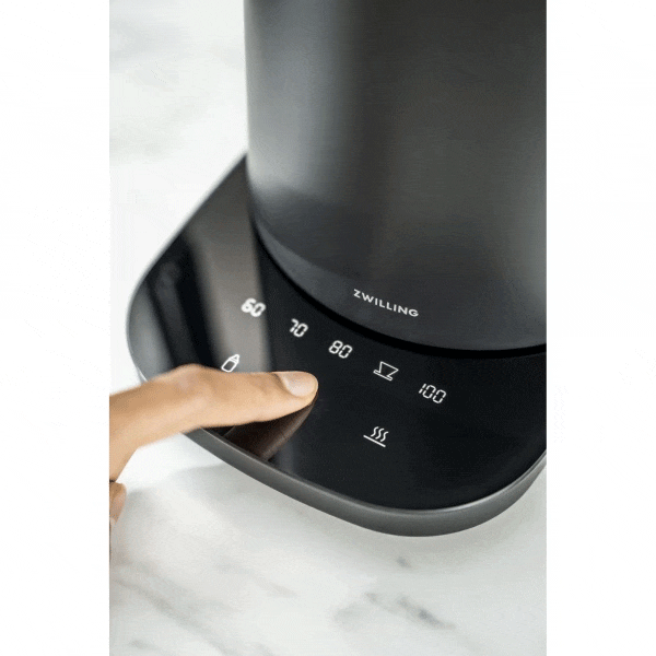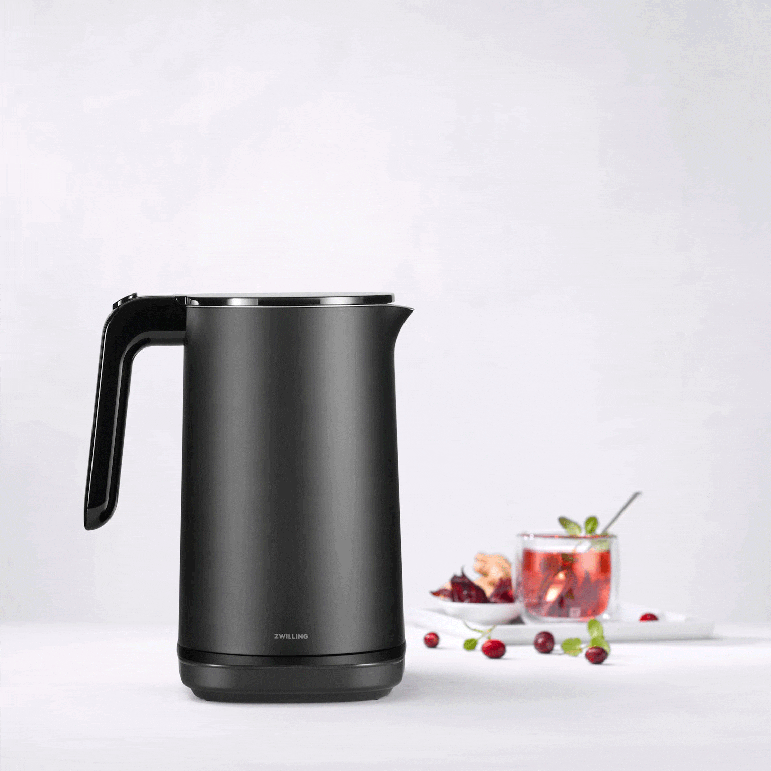 Электрический чайник Enfinigy Pro от Zwilling с регулируемой температурой предлагает 7 программ, которые можно выбрать через 360 ° базовую станцию ​​с сенсорным экраном. Чайник с контролем температуры всегда достигает идеального количества градусов, например, кофе, чай или детское питание. Благодаря встроенной функции сохранения тепла вода остается при желаемой температуре до 30 минут. Теплоизолирующий корпус с двойными стенками также удерживает горячую воду внутри в течение более длительного времени, а внешнюю стенку охлаждают для дополнительной безопасности. Внутренняя часть чайника выполнена из нержавеющей стали и имеет емкость 1,5 л. Кроме того, гладкую поверхность особенно легко чистить, а встроенный известковый фильтр, также частично изготовленный из нержавеющей стали, гарантирует лучший вкус.