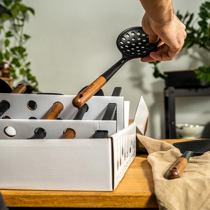 Ергономічний, функціональний і водночас красивий дизайн робить шумовку гармонійним доповненням до інших виробів STAUB на кухні та на столі.