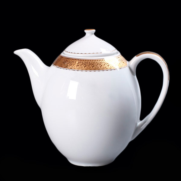Матеріал: високоякісна порцеляна білого кольору з красивим широким золотим обідком