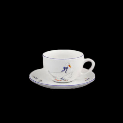 Матеріал: високоякісна фарфор білого кольору з синім обідком і малюнком з гусочками