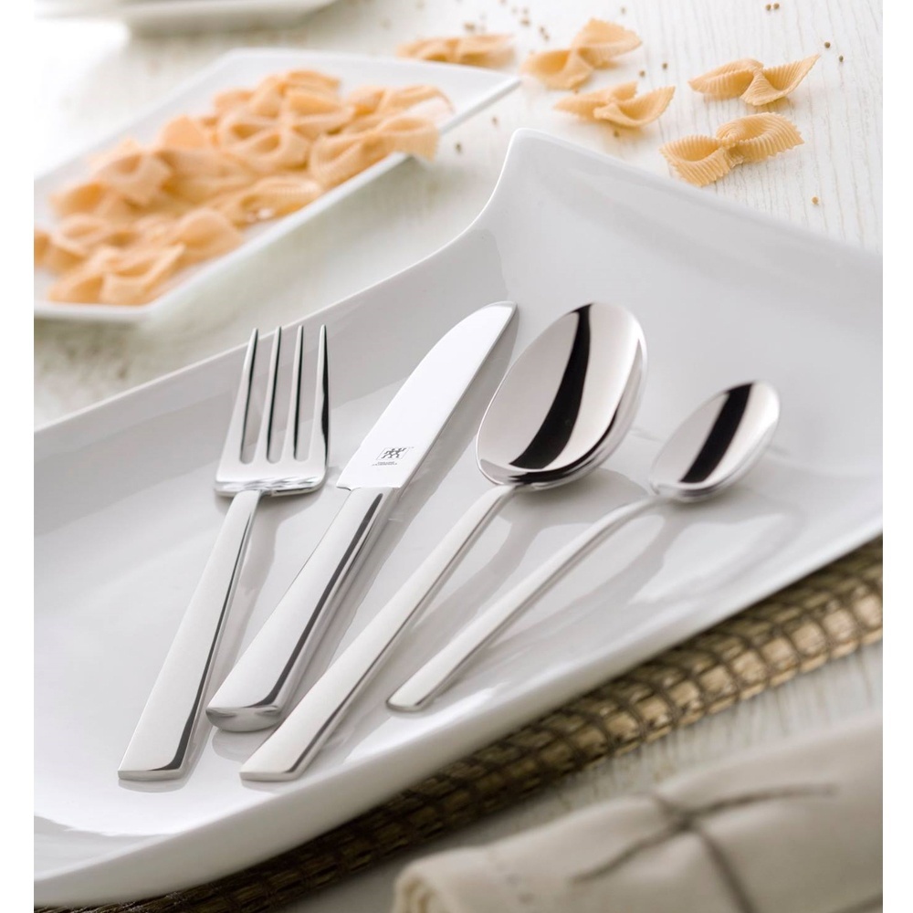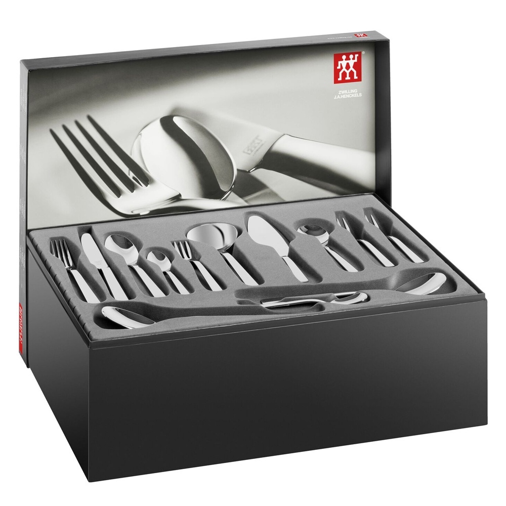 Столові прибори Zwilling King виготовлені із високоякісної нержавіючої сталі. Поверхня глянцева, із заокругленими краями. Набір упакований у фірмову картонну коробку і складається з: