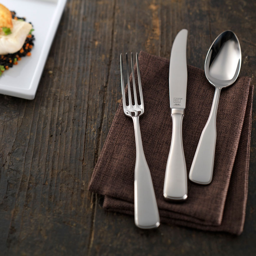 Столовые приборы Mayfield от Zwilling J.A. Henckels изготовлены из нержавеющей стали 18/10 (хром/никель), что делает их более стойкими царапинам, более блестящими и стойкими к коррозии. Все поверхности и кромки идеально отполированы. Каждый предмет из набора идеально сбалансирован, эргономичен, что приносит удовольствие от пользования этими столовыми приборами. Высочайшее качество, комфорт и максимальная функциональность – вот стандарты, которыми руководствуются дизайнеры, создавая продукцию Zwilling J.A. Henckels. Классический дизайн в современной интерпретации. Расширенная форма ручки прекрасно сочетается с изящными элементами. Новый, неповторимый дизайн, который стал классикой, разработанный всемирно известным дизайнером и архитектором мирового уровня Matteo Thun. Подходит для мытья в посудомоечной машине. Упаковано в фирменную картонную коробку.