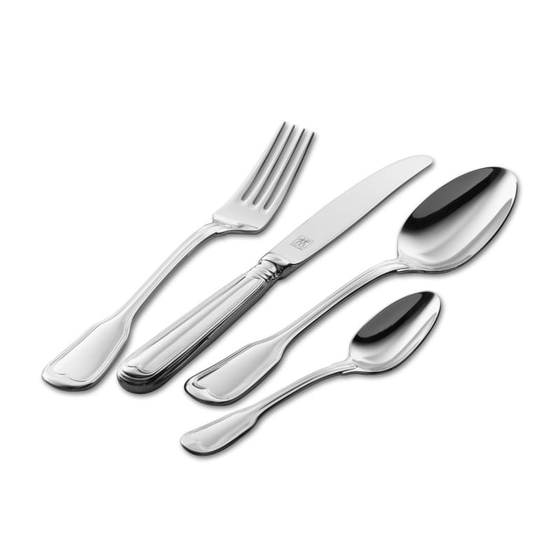 Набір столових приборів із 60 предметів серії Klassisch Faden від ZWILLING – це класична елегантність, найвища якість та вінтажний дизайн. Велика ширина ручки не лише робить столові прибори зручними в руці, але й надає набору солідного вигляду, що в поєднанні з блиском створює чарівний ефект. Прибори виготовлені з високоякісної нержавіючої сталі - дуже міцний, стійкий до іржі і безпечний для посудомийної машини матеріал. Поверхня глянцева, із заокругленими краями. Набір упакований у фірмову картонну коробку і складається з: