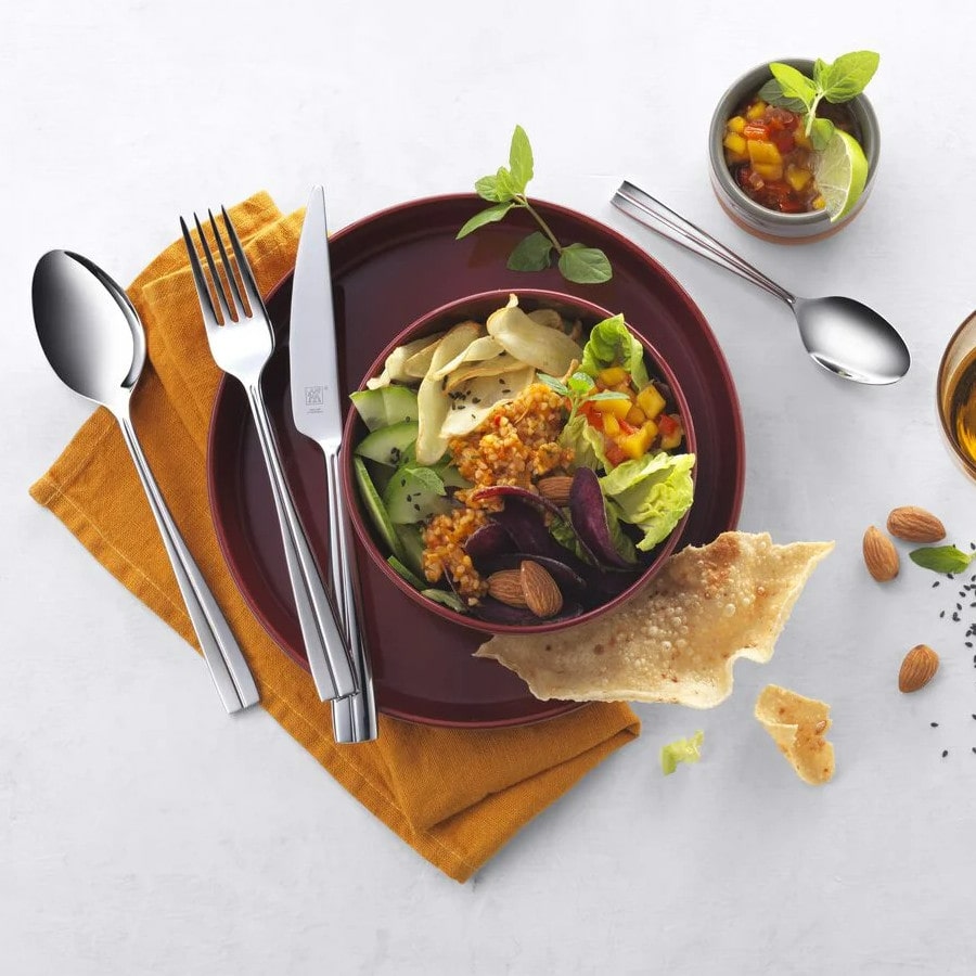 Коли Маттео Тун розробляє концепт столових приборів, результат завжди виходить екстраординарним. Йому вдається створити незвичайний дизайн, який не має аналогів, не лише елегантний, але й функціональний. Набір Constance демонструє це особливо вражаюче. Столові прибори виготовлені із високоякісної нержавіючої сталі. Поверхня полірована, із заокругленими краями. Набір упакований у фірмову картонну коробку і складається з: